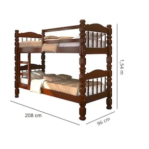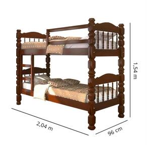 Beliche Palmo – CASTANHO ?Beliches são ótimos aliados para quem quer poupar espaço. A Beliche Palmo é uma ótima pedida para compor o seu dormitório. Além de ser um móvel funcional também reúne design e estilo, combina com diversos tipos de decorações. Confeccionado com madeira pinus, sua estrutura possui mais resistência e oferece mais segurança para as suas noites de sono. Características Gerais - Para Colchão 0.88 x 1.88 - Produto fabricado em 100% Madeira Maciça Pinus.- Espessuras dos pês 0.8 x 0.8 cm- Grade Lateral maciça reforçada;- Possui Estrado Reforçado;- Exclusiva Grade de Proteção na parte lateral- Suporta no Máximo 150kg;- Possui um Fino Acabamento;.- Ripas e sarrafos do estrado em madeira maciça.- Produto versátil encaixa em vários ambientes.- Lindo design.- Não acompanha colchão Dimensão aproximada:Largura: 96 cm Comprimento: 2,08 mAltura: 154 cm Peso: 32kg Atenção! Confira as dimensões deste produto e certifique-se de que passará normalmente por supostos elevadores, portas, escadas e/ou corredores de sua moradia; As imagens são ilustrativas, eletrodomésticos e demais objetos que compõem o cenário, não fazem parte do anúncio; Sobre a tonalidade das cores, poderá ocorrer alterações conforme a configuração do seu monitor. Orientamos que a montagem e instalações do produto seja realizado por um técnico de sua confiança, após a sua entrega. Não nos responsabilizamos pela instalação/montagem. Fornecemos somente assistências, por defeitos de fábrica.
