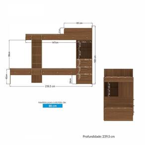 Tamanho montado: 169 cm x 92,5 cm x 239,5 - Altura x Largura x Profundidade