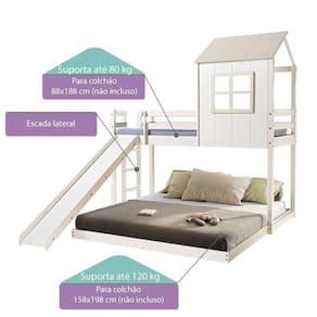 A Casatema é uma loja especializada em Móveis infantis no conceito lúdico, onde a diversão e segurança fazem parte do design de cada peça. Todo o processo de construção de nossos móveis é baseado nas experiências de nossas crianças, o que torna nossos produtos inovadores no mercado! O Beliche Queen Montessoriano Family foi desenvolvido exclusivamente pela Casatema. Essa peça pode acomodar até três crianças, um casal com um filho, mãe com dois filhos e uma mãe solo com dois filhos. Um projeto lindo, perfeito para trazer magia ao quarto. Acompanha Colchão: Não Altura do Conjunto: 211 cm Ambiente Principal: Quarto Infantil codigo_ean: 7909903338735 Cor: Branco/Off White Cor do Produto: Branco/Off White Informação Complementar: 1x Cama Alta Infantil Cabana Family Branco/Off WhiteLargura: 206 cmAltura: 211 cmPeso: 45 kgProfundidade: 110 cmNecessita Montagem: Sim1x Escorregador Para Cama Alta Cabana Family BrancoLargura: 33,5 cmAltura: 9 cmPeso: 11 kgProfundidade: 182,5 cmNecessita Montagem: Sim1x Cama Montessoriana Queen Para Cama Cabana Family BrancoLargura: 202 cmAltura: 9 cmPeso: 17,7 kgProfundidade: 165 cmNecessita Montagem: Sim Material Principal: Madeira Maciça Permite a Utilização de Cama Auxiliar: Não Possui Portas: Não