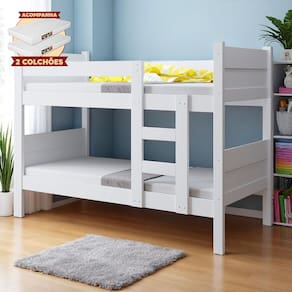 Beliche Resistente Fortaleza em Mdf Vira 2 Camas Solteiro Branco com 2 Colchões