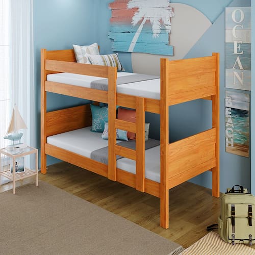 Beliche Resistente Fortaleza em Mdf Vira 2 Camas Solteiro Nature Amadeirado - Beliche em MDF