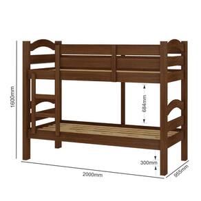 Produto em Madeira de Pinus Macico e MDF Estrutura do Pe em Madeira (100 x 55mm) Pintura com impressao UV e Verniz Bordas em Esmalte PU e Fita de Borda Papel Soft Barra em MDF de 22 mm 5 Travessa no Estrado com Madeira Clean Reforcad Suporta ate 120kg com um colchao D-33 (cada cama) Colchao 0,88 x 1,88