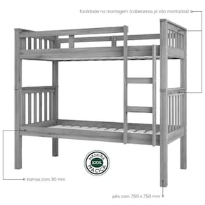 Conteúdo da Embalagem: 1 Beliche, Kit Ferragem e Manual de Montagem
