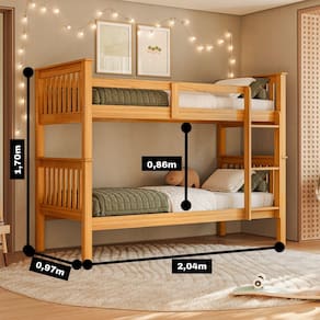 Detalhes do Produto - **Modelo**: WBL104 - **Material**: Madeira maciça de pinus + MDF 2,2cm - **Acabamento**: Pintura PU (branco ou castanho) com brilho UV 30% - **Peso Suportado**: 120 kg por cama - **Altura entre camas**: 86 cm - **Para colchões**: 188 x 88 cm (não inclusos) - **Escada**: Fixa - **Pode virar 2 camas separadas**: Sim - **Necessita montagem**: Sim (manual incluso) - **Cores disponíveis**: Branco ou Castanho - **Garantia do fabricante**: 3 meses