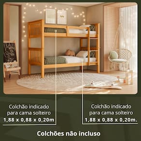 Na embalagem vai: - 1 Beliche de solteiro - Manual de montagem - Kit de ferragens