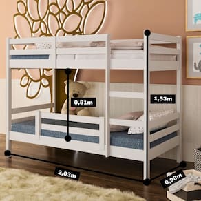 Dimensões do beliche de solteiro montado: Comprimento (cm): 198 Altura (cm): 153 Largura (cm): 98