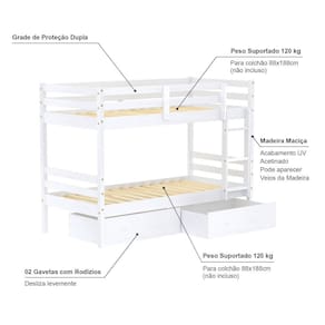 Diferenciais: Todo em Madeira, Escada Fixa, Grade de Proteção Dupla, 02 Gavetas.