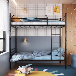 Ideal para otimizar espaço, o Beliche James combina design inteligente e funcionalidade. Com uma cama de solteiro inferior (colchão 1,88x88 cm) e uma superior (1,88x88 cm), é perfeito para ambientes compactos, casas de campo e de praia, oferecendo praticidade e conforto extra.