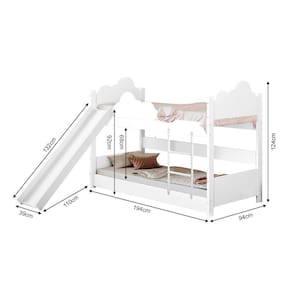 Beliche Solteiro Erika Nuvem Com Escorregador - BrancoA Beliche Solteiro Erika proporciona para o quarto um toque de delicadeza, requinte e conforto. Além de decorar ainda mais o ambiente, ela traz diversão e alta segurança pois é feita em MDF, material resistente e de qualidade.Tipo: Beliche SolteiroModelo: ErikaCor: Branco Garantia: 90 diasProduto DesmontadoMaterial 100% MDFPintura UV Verniz BrilhoNão acompanha colchãoItens inclusos:EscorregadorKit de montagemManual de montagemGrade de proteçãoMedidas:Altura: 124cmLargura: 94cmComprimento: 194cmATENÇÃOIMAGENS MERAMENTE ILUSTRATIVAS REALIZADO EDIÇÃO, PODENDO HAVER UMA PEQUENA VARIAÇÃO DE COR DEPENDENDO DE CADA TELA OU MONITOR. Marca: BABY MOBILIA