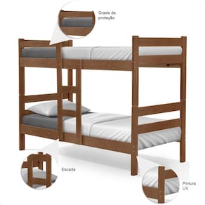 A Beliche de Solteiro Luke é um produto prático e versátil desenvolvido em MDF para ambientes com pouco espaço. Com design moderno e acabamento de alta qualidade, a beliche é produzido com materiais resistentes e duráveis. Além disso, possui sistema anti-ruídos, escada de acesso e proteção lateral para maior segurança. A Beliche transforma com facilidade em 02 camas de solteiro, podendo optar por duas possibilidades de montagem. Acompanha 02 colchões fabricado em espuma D20, com sistema dupla face, tecido poliéster e acabamento em tecido bordado com espumas de poliuretano, com proteção contra ácaros, fungos e bactérias.