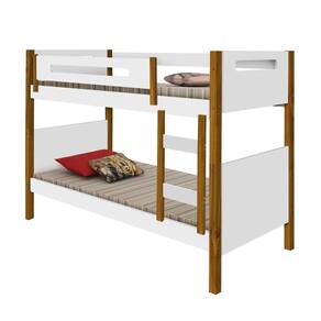 Cama superior com duas grades de proteção, sendo uma interiça em um dos lados, proporcionando mais segurança. O pés são em madeira maciça.