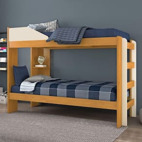 A Beliche Indy e fabricada com material MDF e MDP. A cama superior e acessivel atraves de uma escada fixa, que e integrada a estrutura da beliche e planejada para ser segura e facil de usar. O produto e uma excelente escolha para quem procura uma solucao de cama pratica, confortavel e segura para dois usuarios.