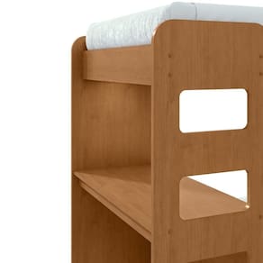Confeccionada em MDF/MDP, sua aparência com cantos arredondados impressiona pela percepção de acolhimento, e suas barras laterais em MDF de 25mm, com proteção em ambos os lados, a tornam um móvel mais seguro contra quedas e muito mais prático de ser aplicado.