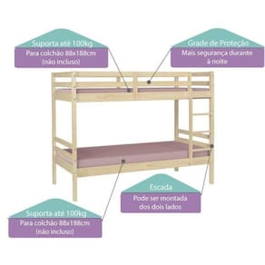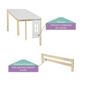 Acompanha Colchão: Não Altura do Conjunto: 156 cm Ambiente: null Ambiente Principal: Quarto Infantil Cor: Marroml/Branco Informação Complementar: 1x Grade de Proteção IV em Madeira Maciça MarromlLargura: 110Altura: 32Peso: 3Profundidade: 6.3Necessita Montagem: Sim1x Kit Telhado II com Janelinha Marroml/BrancoLargura: 75Altura: 115Peso: 12Profundidade: 115Necessita Montagem: Sim1x Beliche em Madeira Maciça Teen Play MarromlLargura: 198Altura: 156Peso: 51Profundidade: 104Necessita Montagem: Sim Material Principal: Madeira Maciça Permite a Utilização de Cama Auxiliar: Sim Possui Portas: Não Possui Rodízio: Não