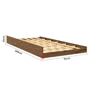 • Estrado de Madeira • Laterais em MDF • 04 Travessas em Madeira • 05 Ripas em MDF • Altura: 20cm • Largura: 91cm • Profundidade: 189cm • Peso:12,60KG
