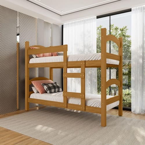 Beliche Trento Art Panta 100% Mdf C/ Escada Vira 2 Camas P/colchão 188x88- Super Reforçada - Nature A Beliche Trento Art Panta possui um design moderno e sofisticado agregando charme e beleza ao ambiente. Com sua estrutura reforçada, proporcionando qualidade e durabilidade. Para maior segurança ela acompanha proteção lateral na cama superior e escada. Além disso a beliche pode ser montada em duas camas de solteiro podendo ser usada da maneira que preferir, se adequando melhor em seu lar. Ideal para colchão de 0,88x188cm. Pesos e Dimensões MEDIDAS: [ A ] = 160 cm [ L ] = 95 cm [ P ] = 202 cm PESO: 52,95 kg PESO SUPORTADO: 200kg (100kg em cada cama) Características MODELO: Beliche Trento Art Panta MATERIAL: MDF / Madeira EXPESSURA DO MATERIAL: 15mm TIPO DE PINTURA: UV ACABAMENTO DA PINTURA: Semi Brilho POSSUI GAVETAS: Não POSSUI NICHOS: Não POSSUI PÉS: Sim POSSUI CAMA AUXILIAR: Não POSSUI BAÚ: Não ACOMPANHA COLCHÃO: Não DIFERENCIAL: Cama 2 em 1, pode ser convertida em 2 camas de solteiro TAMANHO DO COLCHÃO: Solteiro 88 cm largura INSTRUÇÕES/CUIDADOS: Utilizar pano seco para limpeza, não expor ao sol e não molhar.