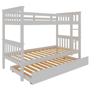 Detalhes do Produto:<br> Modelo: BL104.T002.30<br> Material: Madeira Maciça de Pinus de Reflorestamento e MDF de 2,2 cm de espessura<br> Pintura/Acabamento: Laca 30% de Brilho, permitindo a visualização dos veios da madeira<br> Dimensões para Colchões: 188x88 cm (não inclusos)<br> Peso Suportado: 120 kg por cama (incluindo cama auxiliar)<br> Acessórios: Escada fixa e cama auxiliar com rodízios<br> Altura entre camas: 70 cm<br><br> Cores Disponíveis:<br> Branco<br> Castanho<br> *Tonalidades podem variar conforme as configurações do dispositivo.<br><br>