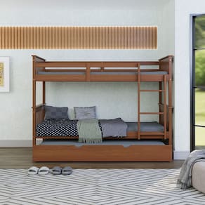 Beliche Triplo Solteiro Merk De Madeira Com Cama Auxliar - Marrom