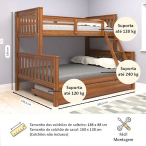 Beliche Woodstore Casal/Solteiro D Madeira Com Cama Auxiliar