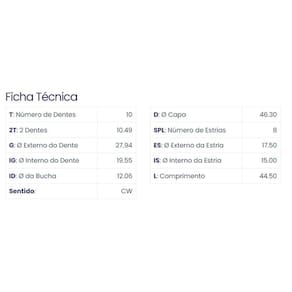 Bendix impulsor de partida bzm 0597 grand cherokee jeep cherokee jeep wrangler único - Bendix impulsor de partida do motor de arranque Codigo: Bzm 9905970 Zen 0597 Ficha técnica: T: número de dentes 10 2t: 2 dentes 10.49 G: externo do dente 27.94 Ig: interno do dente 19.55 Id: da bucha 12.06 Sentido: cw D: capa 46.30 Spl: número de estrias 8 Es: externo da estria 17.50 Is: interno da estria 15.00 L: comprimento 44.50 Aplicações: Jeep grand cherokee 1995 Jeep cherokee 01/1994 em diante Jeep cherokee 4.0, 01/1987 até 01/1992 Jeep wrangler 4.0, 01/1988 até 01/1993 Jeep wrangler 4.2, 01/1988 até 01/1993 Lester 16514, 17006, 17046, 17564 Lucas indiel 223766 Mitsubishi m191t12271, m191t12272 Motor Mitsubishi 56041012ab, m001t84381zc, m1t74281, m1t74481, m1t74482 Conteúdo da embalagem: 1 - bendix impulsor de partida bzm 0597 Características gerais do produto: Marca: bzm Dentes: 10 Sentido de rotação: horário Modelo produto: bzm 99,0597,0 Acompanha o produto: 1 - bendix impulsor de partida bzm 0597 : Sem Marca: Não Informado