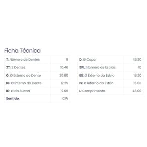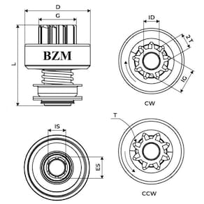 Bendix impulsor de partida bzm 1153 sandero clio kangoo modus thalia kubistar twingo único - Bendix impulsor de partida do motor de arranque Codigo: Bzm 9911530 Zen 1153 Ficha técnica: T: número de dentes 9 2t: 2 dentes 10.46 G: externo do dente 25.80 Ig: interno do dente 17.25 Id: da bucha 12.06 Sentido: cw D: capa 46.30 Spl: número de estrias 10 Es: externo da estria 18.30 Is: interno da estria 15.00 L: comprimento 46.00 Aplicações: Dacia Sandero 1.2 16v Nissan Kubistar 1.2 16v Renault Clio 1.2i Clio ii 1.2i Kangoo 1.2i Modus 1.2 16v Thalia 1.2 16v Twingo 1.2i Bosch 1006209704 Cargo 231896, 333210 Lucas indiel 220421 Renault 7701047291 Wai 5491156 Woodauto sdv38189 Motor Bosch 0001116001 Conteúdo da embalagem: 1 - bendix impulsor de partida bzm 1153 Características gerais do produto: Marca: bzm Dentes: 9 Sentido de rotação: horário Modelo produto: bzm 99,1153,0 Acompanha o produto: 1 - bendix impulsor de partida bzm 1153 : Sem