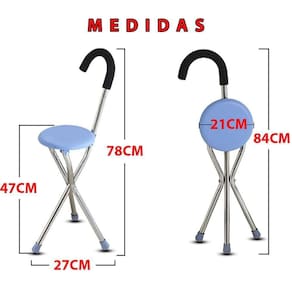 Este incrível produto combina a praticidade de uma bengala com a conveniência de um assento confortável.