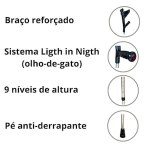 Bengala muleta altura regulável canadense reforçada 120kg Cor: preta Muleta canadense Conteúdo da embalagem: 01 muleta canadense em alumínio A muleta canadense é leve, resistente e anatômica. Desenvolvida para auxiliar pessoas com dificuldade de mobilidade, aliviando o peso sobre os membros inferiores, facilitando a reeducação da marcha e contribuindo para sua independência nas atividades diárias. Fabricada em alumínio, é leve, resistente e anatômica, possui ajuste de altura, e apoio confortável para o antebraço e a mão, além de ponteiras de borracha que permitem melhor aderência ao solo. Especificações e características: Apoio do braço fixo, em polipropileno, anatômico e higiênico; Alumínio em liga especial, com alta resistência e imune a corrosão; Antirruído interno; Sistema light in night; Ponteira resistente e muito aderente a pisos úmidos; Regulagem de altura: de 77 cm a 98 cm. Ideal para usuários de 1,5 a 2m Suporta até 120 kg. Composição: Parte metálica: alumínio Braçadeira e punho: polipropileno Ponteira: borracha Nossos produtos atendem aos mais exigentes padrões de qualidade. Em caso de dúvidas, seguimos à disposição pelo campo de perguntas. Dúvidas frequentes: - o produto tem - r. 3 meses de , contra defeitos de fabricação. Atenção: não trocamos as cores do pedido após a efetivação da compra. Marca: Não Informado