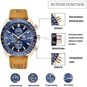 COMPOSIÇÃO DO RELÓGIO MATERRIAL:Movimento de quartzo de precisão, vidro mineral à prova de arranhões, estrutura metálica de alta qualidade e banda de couro.USO DIÁRIO: 30M à prova d'água e exibição de data, Sub-discagem de três cronógrafos, sub-discagem de 1/10 segundos, Sub-discagem de segundos e sub-discagem de minuto.Fácil de operar, intuitivo de assistir. MANUTENÇÃO PRECISA DO TEMPO: Movimento de quartzo, Fornecer manutenção de tempo precisa e precisa. ESTILO CLÁSSICO: alça de couro com mostrador clássico. Adequado para participar de várias ocasiões. Também é um bom Natal, Dia dos Namorados, casamento, presente de aniversário. EMBALAGEM E GARANTIA: Assista * 1. Caixa de relógio * 1. Manual de Instruções * 1. Cartão de garantia * 1 . Retorno incondicional dentro de 30 dias.