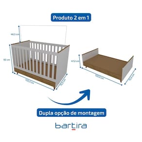 Consulte todos os detalhes do Berço 2 em 1 Bartira Ternura Plus!O kit acompanha o