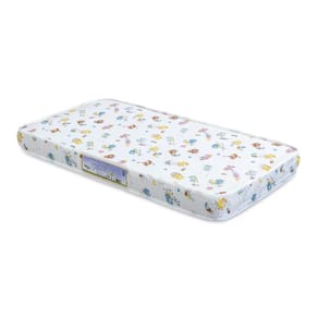 10x70x130 cm, encaixa perfeitamente no berço, oferecendo suporte adequado para crianças de até 3 anos e até 30 kg. O acabamento branco estampado garante durabilidade e visual delicado.