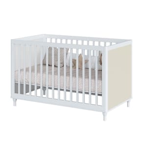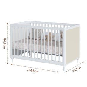 O Berço Americano Fofura 2 em 1 chegou para os quartinhos mais doces e delicados! com duas variações: pode ser todo branco ou branco com acabamento em rattan, na cabeceira e peseira. Além disso, o berço acompanha a mini grade para ser transformado, posteriormente, em mini cama, aumentando a funcionalidade do produto, regule em 3 alturas o estrado do berço. Combine o berço com a cômoda e roupeiro da coleção. Acabamento: Pintura UV Acompanha Cama Auxiliar: Não Acompanha Móbile: Não Acompanha Suporte para Mosquiteiro: Não Altura: 84,3 cm Altura do Estrado até o Chão: 30,5 cm Altura dos Pés: 10,3 cm Ambiente Principal: Quarto de Bebê Certificado: INMETRO 010854/2023 Complexidade da Montagem: Média: pode ser montado por mais de uma pessoa e/ou necessite de maior conhecimento para montagem Cor: Branco Acetinado com Rattan Cor do Produto: Branco Acetinado com Rattan Escala de Brilho: Acetinado Estilo: Contemporâneo Estrado com Regulagem de Altura: Sim Estrado Regulável em Quantas Posições: 03 Itens Inclusos: 1 berço e Largura: 134,8 cm Linha ou Coleção: Fofura Manual de Montagem e Instalação: https://cdn2.madeiramadeira.com.br/atributo/divicar-moveis/1978412-5350-17164746261787.pdf Material da Grade: MADEIRA/MDF Material do Estrado: MDF Material dos Pés: Madeira Maciça Material Principal: MDF Multifunção Flex: Não Necessita Montagem: Sim Opções de Altura do Estrado: 1°49,5cm | 2°30,5 cm | 3° 17,6 cm Origem do Produto: Nacional Permite a Utilização de Cama Auxiliar: Não Peso: 37,7 kg Pintura Atóxica: Sim Portátil: Não Possui Gavetas: Não Possui Pés: 04 Possui Portas: Não Possui Prateleiras: Não Profundidade: 75,9 cm Recomendações de Uso, Manutenção e Limpeza: Utilizar pano umedecido Sapatas Niveladoras: Não Sistema Anti-Refluxo: Não Sistema de Montagem: Parafusos e minifix Suporta Até (kg): 35 kg Tamanho do Colchão Indicado (L x C): 130x70x12cm Tipo de Berço: Berço Americano Tipo de Estrado: Removível Tipo de Grade: Fixa Tipo de Madeira Maciça dos Pés: Pinus