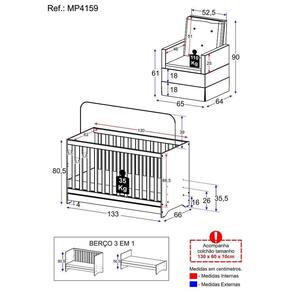 Berço - Altura: 80,5cm | Largura: 133cm | Profundidade: 66cm