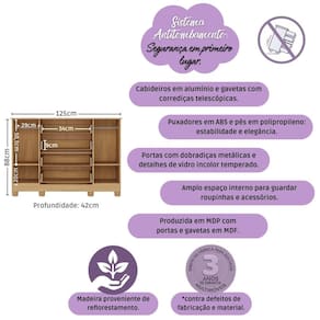 - Sistema antitombamento na cômoda: proporciona segurança para o bebê e tranquilidade aos pais.