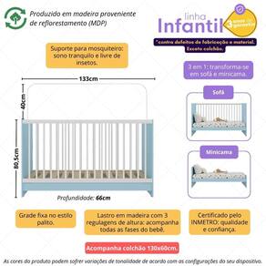 Berço 3 em 1 com Colchão Incluso Multimóveis MP4394 - Azul Bebê