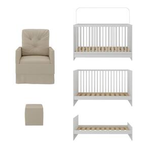 Berço 3 Em 1 Com Colchão Poltrona Amamentação E Puff Multimóveis Mp4151 Branco/bege Branco/bege O Berço 3 em 1 com Colchão Poltrona Amamentação e Puff Multimóveis MP4151 é perfeito para proporcionar conforto ao seu pequeno. O berço produzido em MDP com acabamento acetinado (cerca de 20% de brilho) é padrão nacional (tamanho do colchão 1,30 x 0,60), se transforma em sofá e minicama, acompanhando o crescimento do seu filho, possui 3 regulagens de altura para o colchão e acompanha suporte para mosquiteiro, garantindo noites mais tranquilas de sono para o bebê. As grades em MDF/madeira maciça de pinus garantem maior estabilidade e segurança para o bebê. Selo de certificação do INMETRO: 0000085/2018. Acompanha colchão (suporta até 50kg) em espuma revestido com tecido poliéster, que possui conforto macio, tratamento anti-ácaro e anti-alérgico. A poltrona de amamentação e o puff (suportam até 110kg) são produzidos em madeira de eucalipto, espuma densidade D23, molas reforçadas e mecanismo de balanço. As poltronas e puff nas cores cinza e bege possuem acabamento em tecido veludo. Poltrona e puff na cor branca possui acabamento em material sintético. Conteúdo da Embalagem: 1 (um) Berço 1 (um) Colchão 1 (uma) Poltrona 1 (um) Puff Kit Ferragem Manual de Montagem