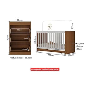 Berço - Altura: 80,5cm | Largura: 133cm | Profundidade: 66cm