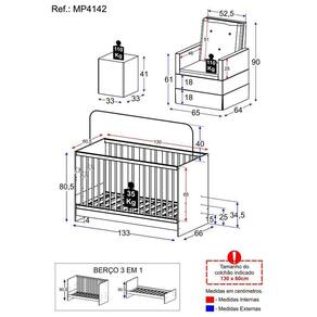 Dimensões do produto montado: Berço - Altura: 80,5cm | Largura: 133cm | Profundidade: 66cm Poltrona - Altura: 90cm | Largura: 65cm | Profundidade: 64cm Puff - Altura: 41cm | Largura: 33cm | Profundidade: 33cm *Você pode consultar as medidas detalhadas na imagem técnica do produto.