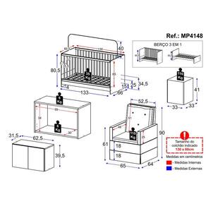 Berço - Altura: 80,5cm | Largura: 133cm | Profundidade: 66cm