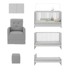 Berço 3 em 1 com Poltrona Amamentação Puff e Armário Aéreo 2 Portas Multimóveis MP4148 - Cinza