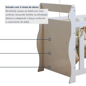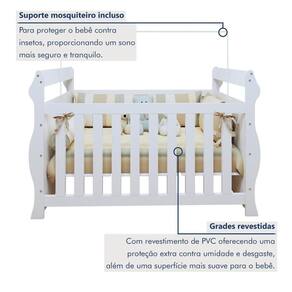 Berço 3 em 1 com Regulagem de Altura 100% MDF Star Branco. Transforme o quartinho do seu bebê em um verdadeiro cantinho de conforto! Nosso berço 100% MDF combina um design sofisticado com a praticidade. Com 3 níveis de altura, ele se ajusta ao crescimento do seu pequeno, garantindo segurança e bem-estar desde os primeiros dias. Os detalhes arredondados dão um toque de charme e aconchego, criando um ambiente acolhedor e encantador. Além de lindo, é resistente e funcional, pensado para tornar cada momento ainda mais especial. Qual é a vantagem de um berço com suporte para mosquiteiro? Ele protege o bebê de insetos, sem o uso de repelentes ou produtos químicos no quarto. Vale a pena comprar um berço que vira caminha? Sim! É uma ótima opção para quando o bebê já está mais independente, mas ainda precisa de uma cama segura e de altura baixa.
