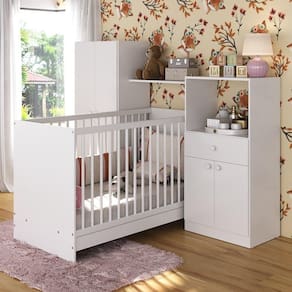 O Berço 3 em 1 e Guarda-Roupas 4 Portas 1 Gaveta Multimóveis MP4144 é a escolha perfeita para quem busca um ambiente sofisticado e confortável para seu pequeno. Produzido em MDP com acabamento acetinado (cerca de 20% de brilho), garante durabilidade e resistência. O berço é padrão nacional (tamanho do colchão 130 x 60cm), se transforma em sofá e minicama, acompanhando o crescimento do seu filho, possui 3 regulagens de altura para o colchão e acompanha suporte para mosquiteiro, garantindo noites mais tranquilas de sono para o bebê. As grades do berço são produzidas em MDF/madeira maciça de pinus. Berço certificado pelo INMETRO sob o selo n 0000085/2018. NÃO acompanha colchão. Estiloso e funcional, o guarda-roupas possui 4 portas e 1 gaveta com corrediças metálicas (oferecem leveza no manuseio), puxadores em ABS e prateleiras externas para colocar brinquedos ou objetos mais utilizados no dia a dia.