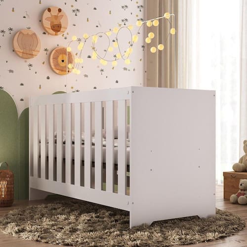 Berço 3 em 1 Tic Tac Branco. O Berço Tic Tac oferece conforto e versatilidade para os pais que valorizam a segurança do bebê. Com sua estrutura sólida, grades em MDF e estrado ajustável em três alturas, este berço cresce com o seu filho, transformando-se em mini-cama e sofá. O acabamento em BP fosco garante facilidade de limpeza, e um tubo mosquiteiro está incluído para proteger contra insetos. Com montagem simplificada e embalagem resistente, é a escolha inteligente para famílias que desejam qualidade e praticidade. Ean: 7896614978858