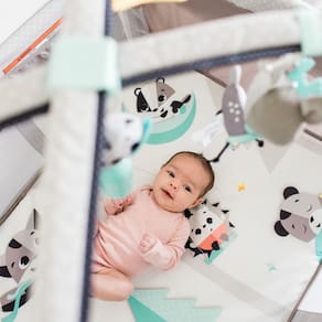 2-6 meses: Os recursos animam a experiência do seu bebê, seja de barriga ou de costas.