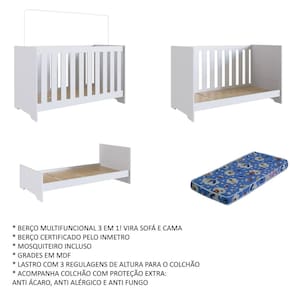 Com o Berço 3 em 1 com Colchão Branco Linha Aconchego Completa Móveis, você terá um produto de qualidade, versátil e seguro para o seu bebê. Aproveite a praticidade e elegância que este berço oferece.