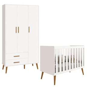 O berço que se transforma em mini cama acompanha o crescimento do bebê. Possui pintura UV de alta qualidade, 3 regulagens de altura no estrado e pés em madeira retrô.