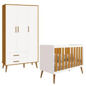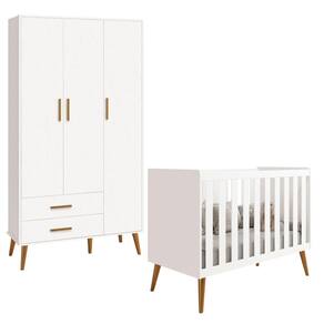 Berço Americano 2 em 1 Reller Isis Retrô e Roupeiro 3 Portas - Nude
