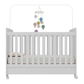 A grade Soft, feita de PVC, é ecologicamente correta, com matéria-prima livre de metais pesados, atóxica e com proteção anti-amarelamento, enquanto as bordas arredondadas oferecem mais segurança para o bebê. O lastro com 3 regulagens de altura do colchão proporciona maior conforto e tranquilidade nas noites de sono. Rodízios facilitam a movimentação do berço e a limpeza do ambiente, enquanto o suporte para mosquiteiro assegura noites livres de insetos. Além disso, o berço é certificado pelo INMETRO.