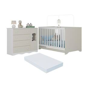 Diferenciais: - 3 anos de garantia contra defeitos de fabricação e material (exceto colchão). - Conjunto produzido em madeira de reflorestamento (MDP 12/15mm) com acabamento acetinado (cerca de 20% de brilho): sustentabilidade e durabilidade. - Berço americano 3 em 1 que se transforma em sofá e minicama, acompanhando o crescimento do bebê. Grade Soft (PVC): ecologicamente correta, com matéria-prima livre de metais pesados, atóxica e com proteção antiamarelamento. - Lastro em madeira com 3 regulagens de altura e suporte para mosquiteiro para noites mais tranquilas e protegidas. - Berço certificado pelo INMETRO (Selo n 000085/2018). - Colchão D18 incluso: possui tratamento antiácaro, antialérgico, antimofo e um dos lados impermeável. - Cômoda com 1 porta, 4 gavetas (frontais em MDF) e rodapé usinado: amplo espaço interno e elegância. - Sistema antitombamento na cômoda: proporciona segurança para o bebê e tranquilidade aos pais. - Porta com detalhe de vidro incolor temperado (3mm): toque charmoso que permite visualizar o interior do móvel. - Corrediças telescópicas: abertura total e silenciosa das gavetas. - Cabideiro de alumínio: permite acomodar as roupinhas para que não amassem. - Puxadores em ABS delicados e práticos.