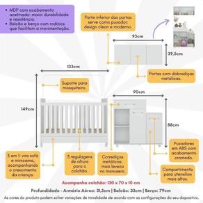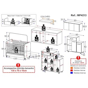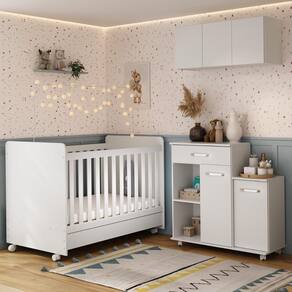 O Berço Americano 3 em 1 com Colchão Incluso Multimóveis MP4213 é uma solução versátil e durável para o quarto do seu bebê. Produzido em MDP com acabamento, oferece uma longa vida útil. Este berço, padrão americano 3 em 1, transforma-se facilmente em sofá e minicama, acompanhando o crescimento do seu filho. Sua grade Soft (PVC) é ecologicamente correta, livre de metais pesados e atóxica, com proteção antiamarelamento para maior segurança. Com três regulagens de altura para o colchão, suporte para mosquiteiro e rodízios inclusos, garante praticidade e conforto. O colchão incluso possui densidade D18, com tratamento anti-ácaro e anti-alérgico, proporcionando um ambiente seguro e saudável para o sono do bebê. Além disso, este conjunto inclui um balcão com 1 gaveta equipada com corrediças metálicas e 2 portas com puxadores em ABS (acabamento cromado), oferecendo amplo espaço interno para organizar os pertences do bebê. O armário aéreo de 3 portas complementa o conjunto adicionando um toque moderno ao ambiente. Berço certificado pelo INMETRO sob o selo n 005770/2018.