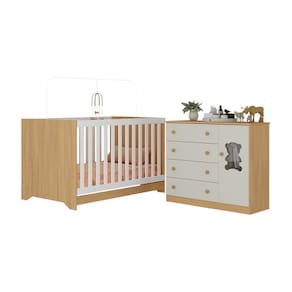 Diferenciais: - 3 anos de garantia contra defeitos de fabricação e material. - Conjunto produzido em madeira de reflorestamento (MDP 12/15mm) com acabamento acetinado (cerca de 20% de brilho): sustentabilidade e durabilidade. - Berço 3 em 1 que se transforma em sofá e minicama, acompanhando o crescimento do bebê. Grade Soft (PVC): ecologicamente correta, com matéria-prima livre de metais pesados, atóxica e com proteção antiamarelamento. - Lastro em madeira com 3 regulagens de altura e suporte para mosquiteiro para noites mais tranquilas e protegidas. - Berço certificado pelo INMETRO (Selo n 000085/2018). - Padrão americano (tamanho do colchão indicado: 130x70cm). Colchão não incluso. - Cômoda com 1 porta, 4 gavetas (frontais em MDF) e rodapé: amplo espaço interno e elegância. - Sistema antitombamento na cômoda: proporciona segurança para o bebê e tranquilidade aos pais. - Porta com detalhe de vidro incolor temperado (3mm): toque charmoso que permite visualizar o interior do móvel. - Corrediças telescópicas: abertura total e silenciosa das gavetas. - Cabideiro de alumínio: permite acomodar as roupinhas para que não amassem. - Puxadores em ABS delicados e práticos.